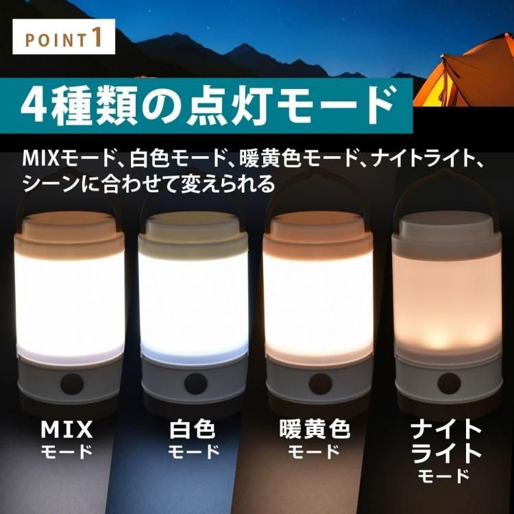 白色・暖色・MIX・ナイトライトの4モード切替に対応し、シーンに合わせて快適な光を選べます。